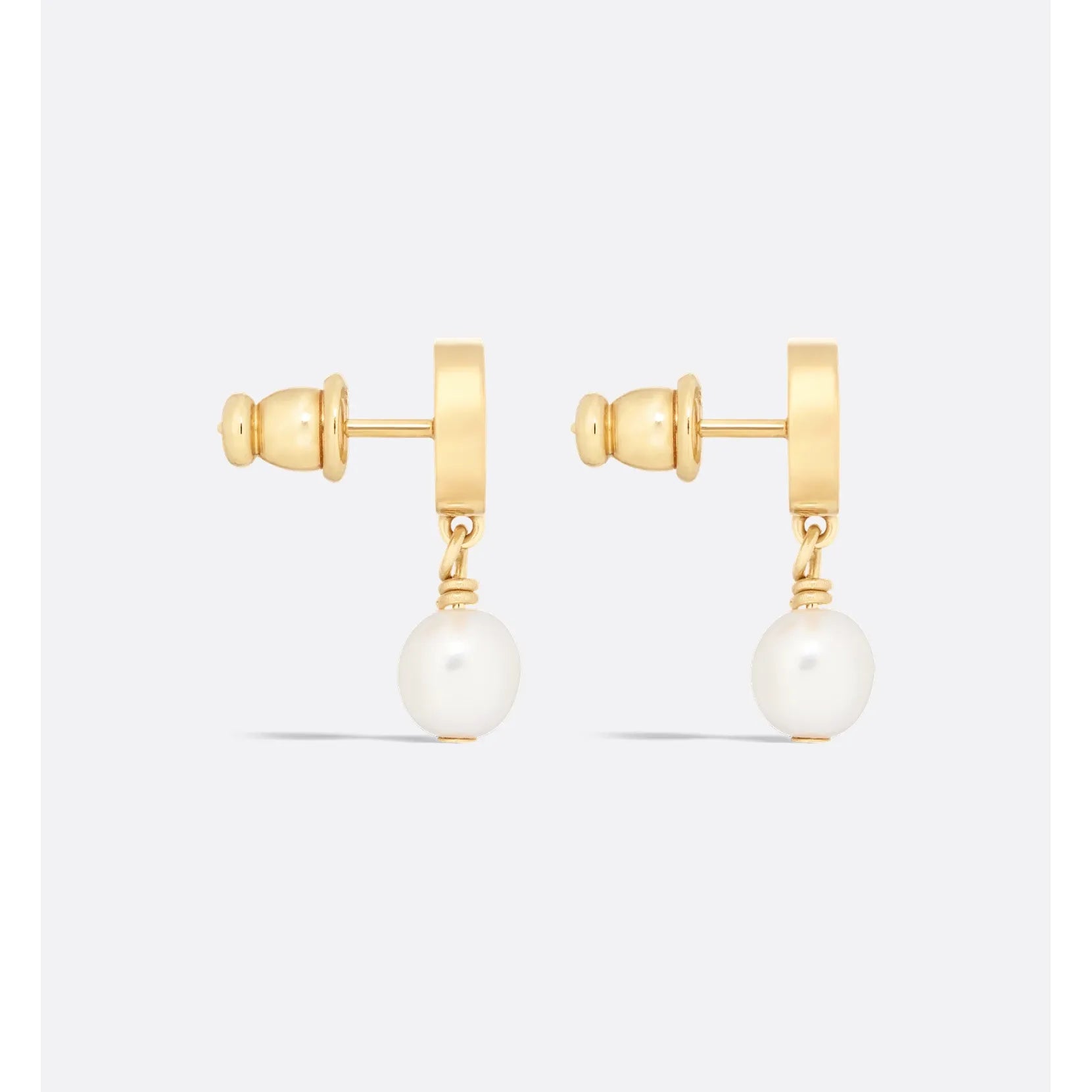 The Petit CD earrings are a work of elegance and refinement. The style is distinguished by a white resin pearl hanging from a gold-finish metal CD signature. The earrings can be styled with other Petit CD creations for a modern and sophisticated look.