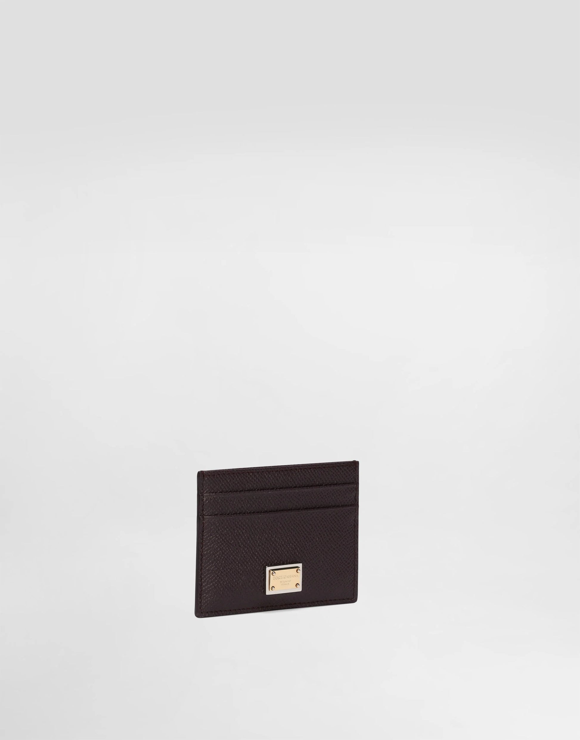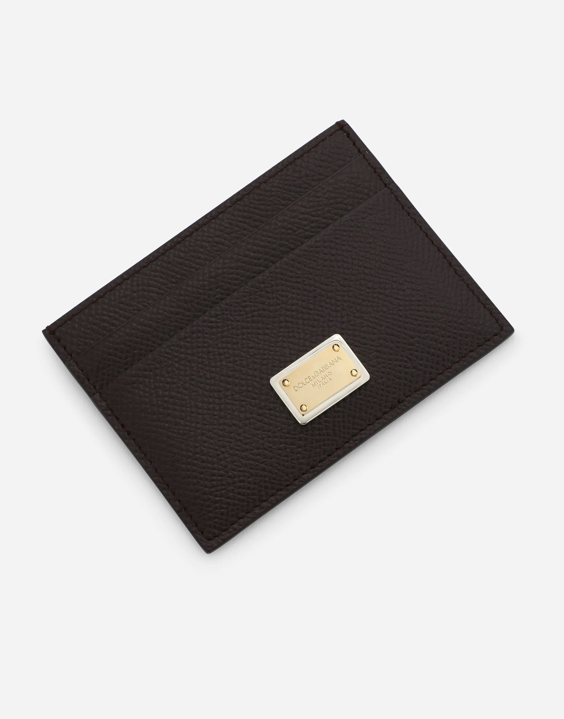 حامل بطاقات من جلد العجل مع لوحة تحمل العلامة التجارية